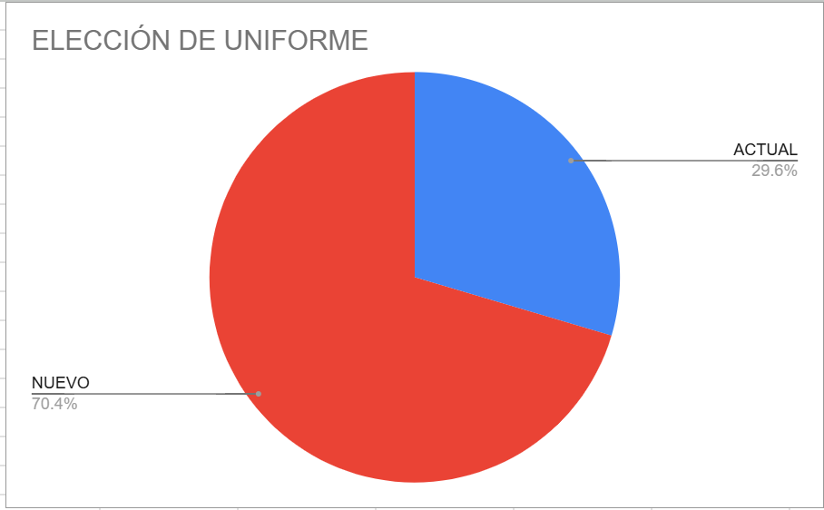 La opción del nuevo uniforme en color azul marino con gris obtuvo una clara mayoría en los tres grupos de votantes, alcanzando un 70,4% del total de votos válidamente emitidos, descontando blancos y nulos.